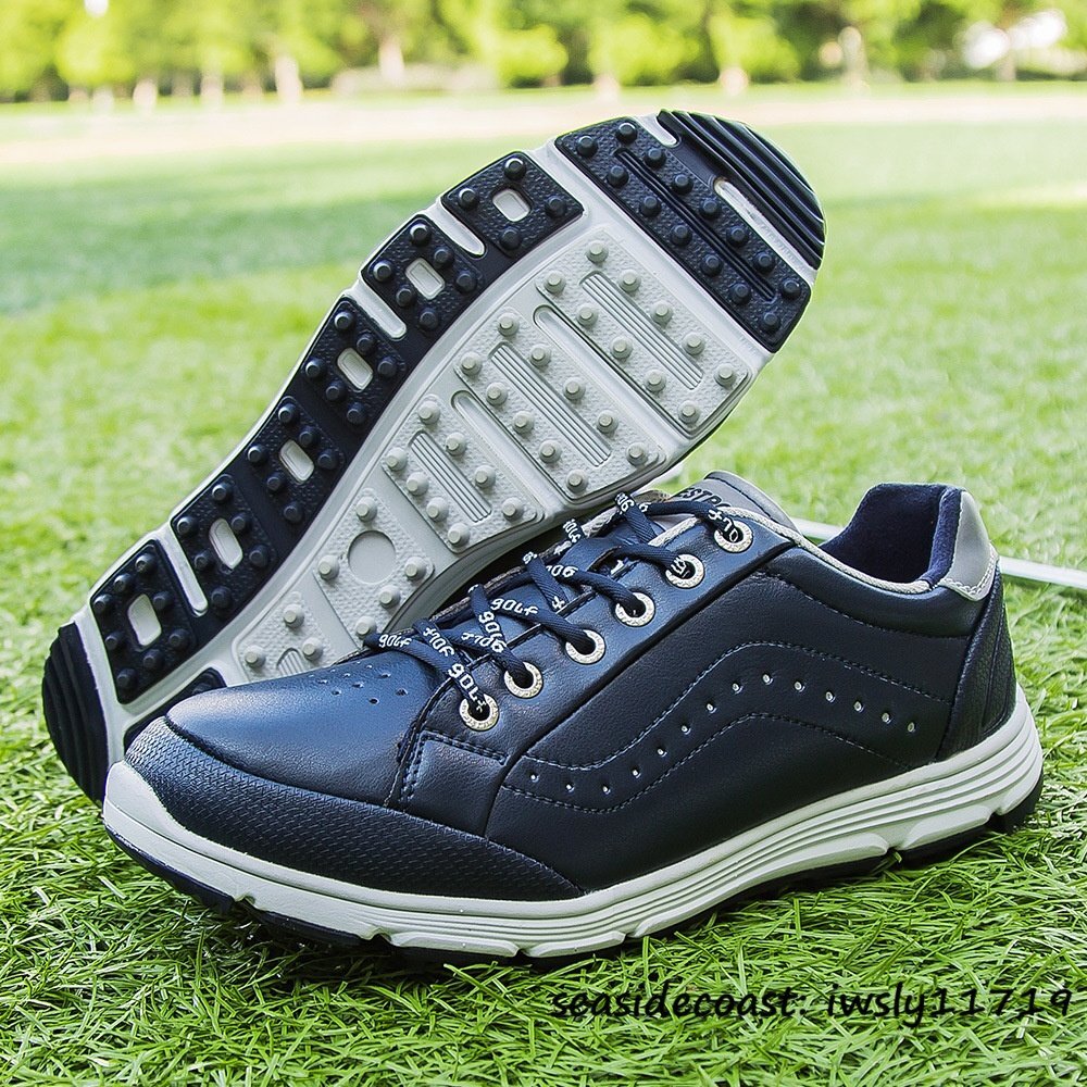 - 絶賛★ゴルフシューズ メンズ 新品 スポーツシューズ 幅広 運動靴 強いグリップ 紳士スニーカー フィット感 防滑耐磨 撥水 ネイビー 28.0cm