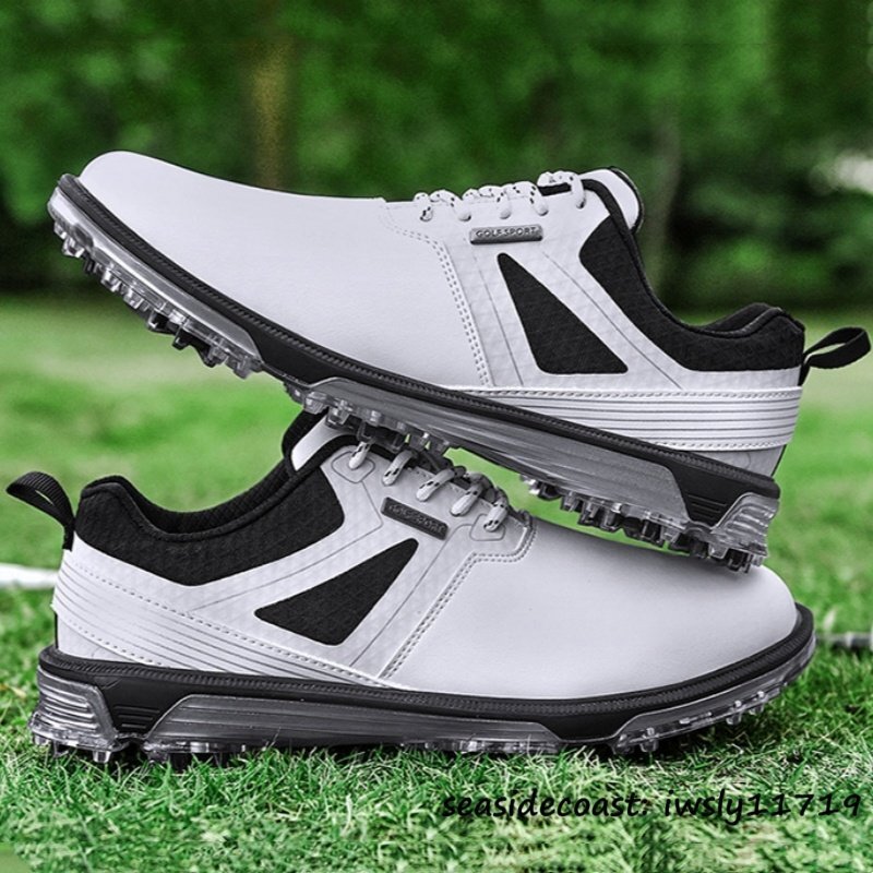 - 高級品 メンズ ゴルフシューズ 運動靴 フィット感 スポーツシューズ スパイク 強いグリップ 軽量 弾力性 通気性 防滑耐磨 撥水 白 28.0cm