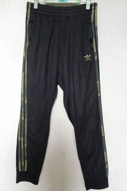 - adidas/アディダス/トラック長パンツ/ジャージ素材/カモフラ柄3本ラインテープ/裾リブ素材/すぽーつ/黒/ブラック/Oサイズ(11/11R7)