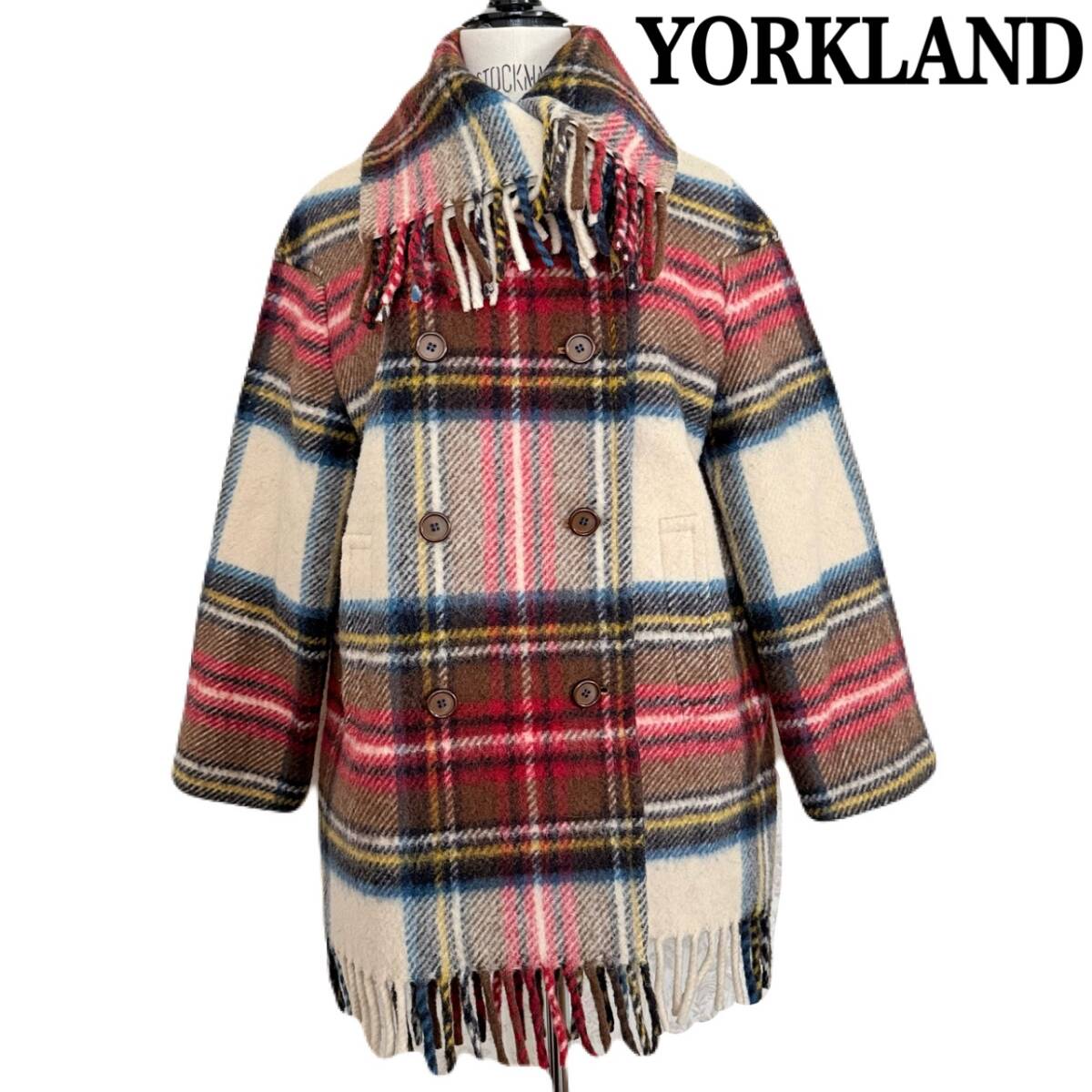 > YORKLAND ヨークランド 90’s vintage ヴィンテージ タータンチェック チェック柄 ウール フリンジ ハーフコート コート ヴィンテージ 9