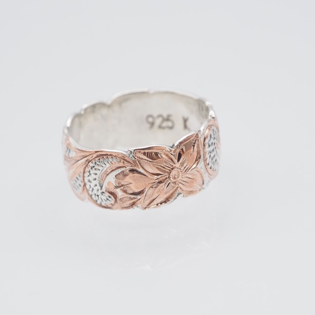 - H647 ハワイアンジュエリー K 925刻印 リング プルメリア ピンクゴールド デザイン シルバー 指輪 11号