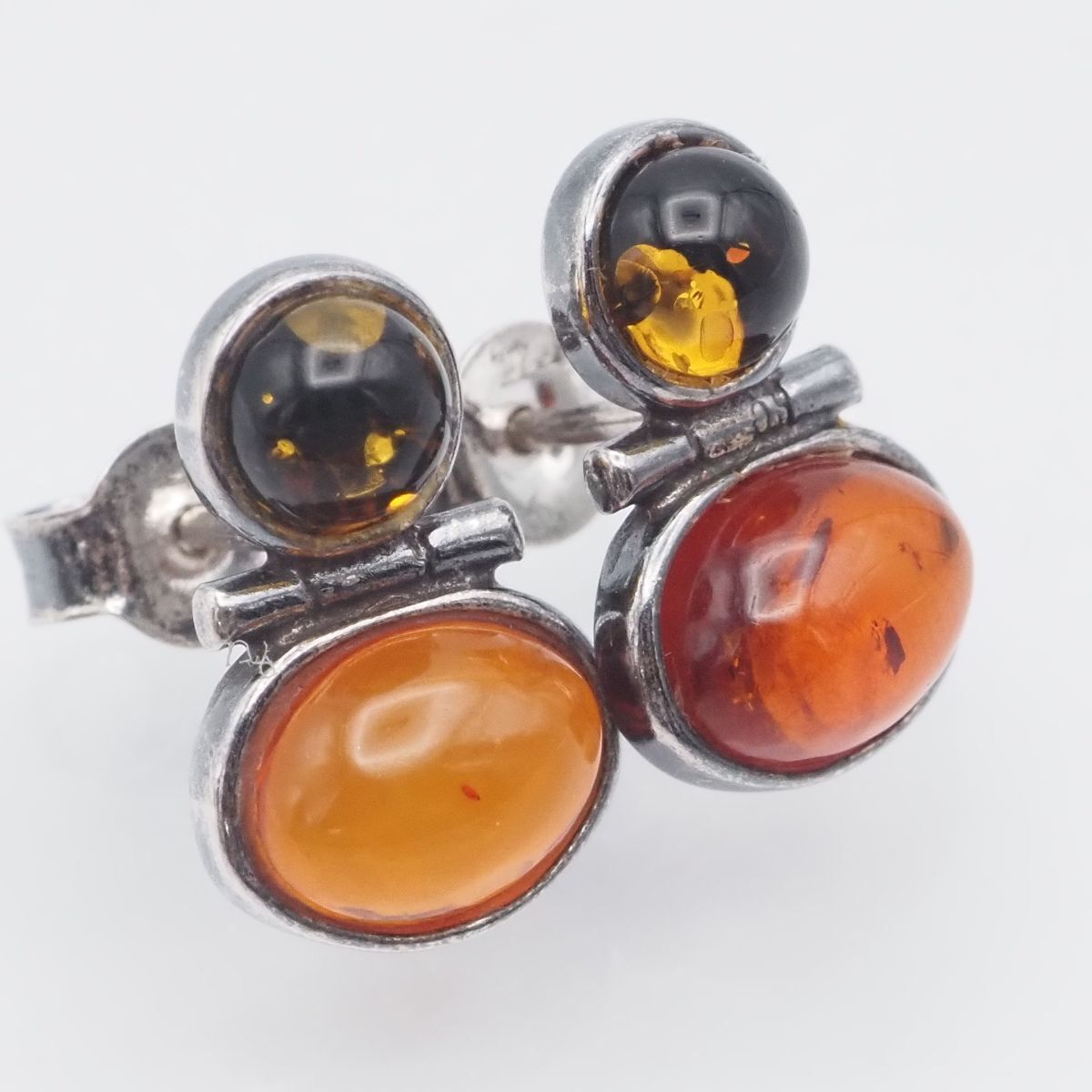 - H862 琥珀 コハク アンバー 925刻印 ピアス デザイン シルバー ヴィンテージ