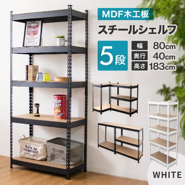 - 新品 スチールラック アイアンシェルフ 最大5段 幅80cm 分割 組み替え可能 おしゃれ スチール シェルフ 収納棚 リビング 植物 物置 白