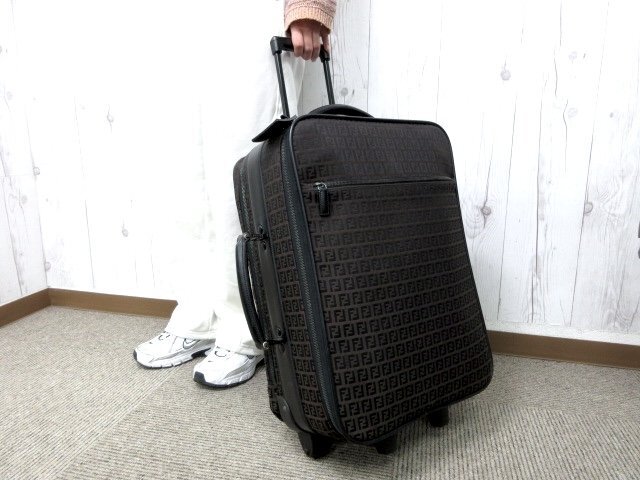 > 極美品 FENDI フェンディ ズッキーノ キャリーバッグ キャリーケース バッグ ナイロンキャンバス×レザー 茶×黒 A4収納可 メンズ 91900