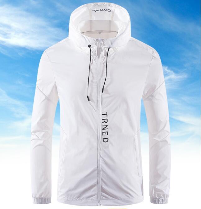- 新作M ホワイト メンズ ウインドブレーカー 英文字 長袖 プリント ロゴ入り 撥水加工 uvカット薄手おしゃれ 羽織り アウトドア ランニング