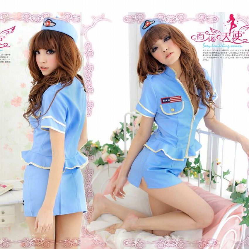 - 新品 未使用送料無料6614コスプレ衣装トップス スカート 帽子3点入スチュワーデス ミニスカコスプレ 婦人警察官 フリルトップ 飾りポケット