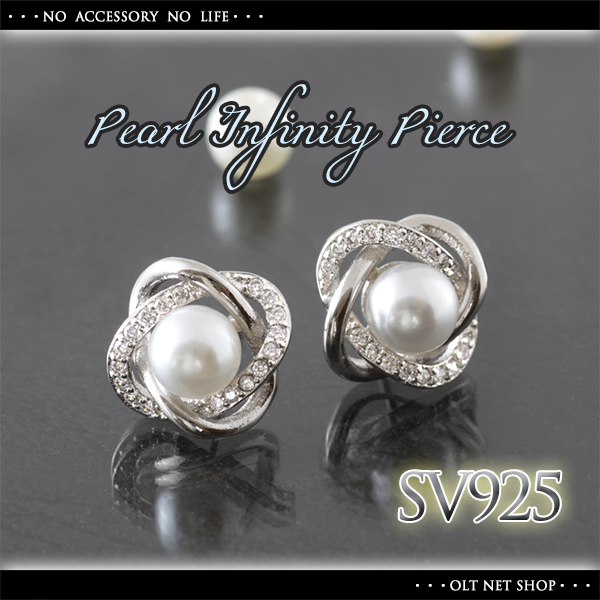 > 新品/ピアス/パール/真珠/ダイヤ/シルバー/レディース/両耳/スタッド/インフィニティ/フォーマル/上品/女性/CZ/プラチナ仕上げ/SV925 刻印
