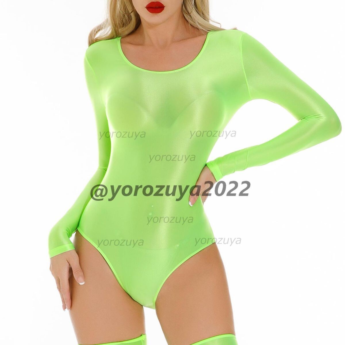- 175-262-25 光沢 ツヤツヤ ハイレグ ロングスリーブ【グリーンXL】 セクシー コスプレ ハイレグ レースクイーン ビキニ レオタード.3