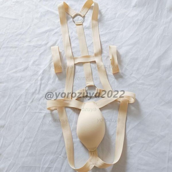 > 126-419-18 YP メンズ カップ付き ボディハーネス セット チェストスーツ【ベージュF】男性 パンツ セクシー ショーツ ゲイ ベルト .1