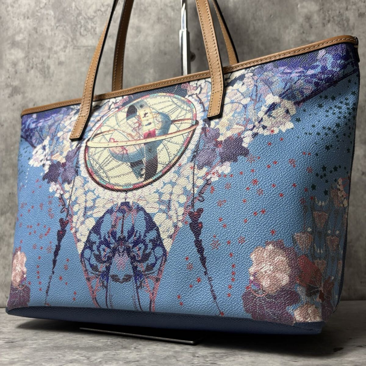 > 極美品/希少デザイン●ETRO エトロ トートバッグ 地球儀 アートデザイン レザー 本革 肩掛け ショルダー 大容量 ビジネス メンズ ブルー 青