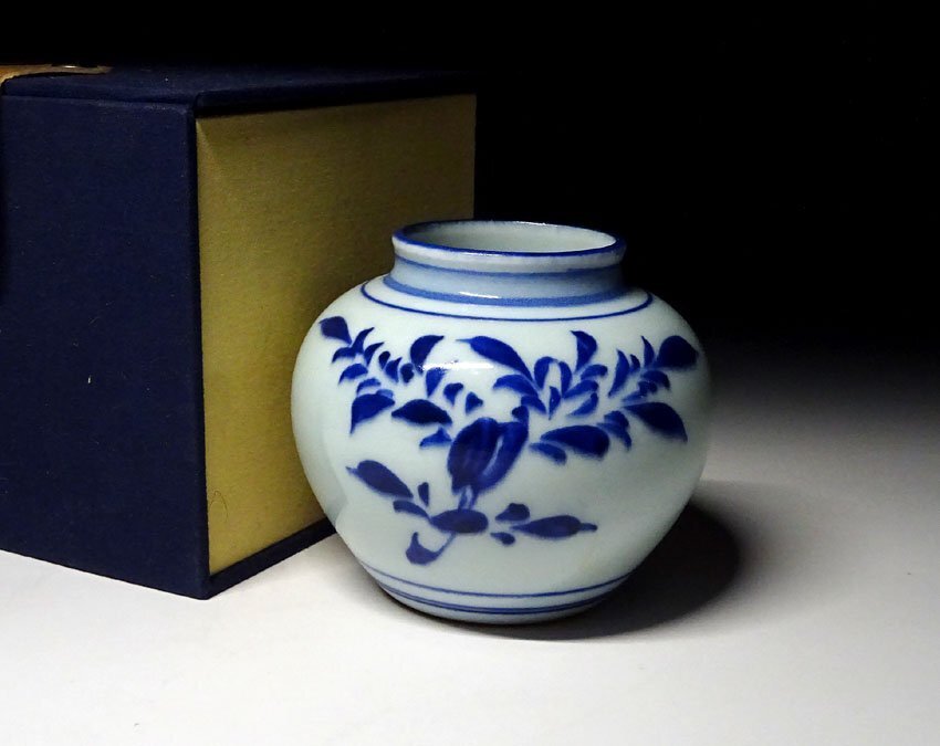 > 緑屋c■ 中国古玩 青花 小壷 花瓶 箱付 唐物 時代物 i9/10-6645/17-4#60