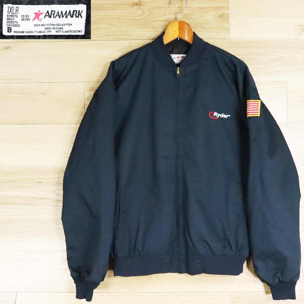 > @7K/D5.8-5 アメリカ古着 ARAMARK ワークジャケット ジップアップジャケット ブルゾン 企業刺 ワッペン ネイビー