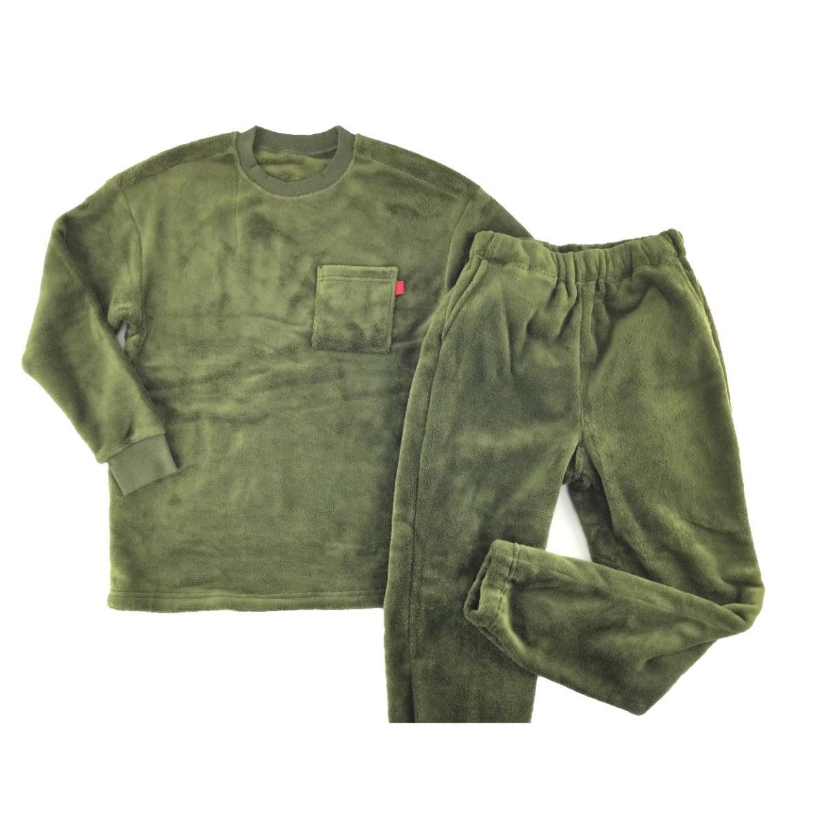 - クルーネックパジャマ あったか フリース素材 ルームウェア 男女兼用 Mサイズ カーキ 冬