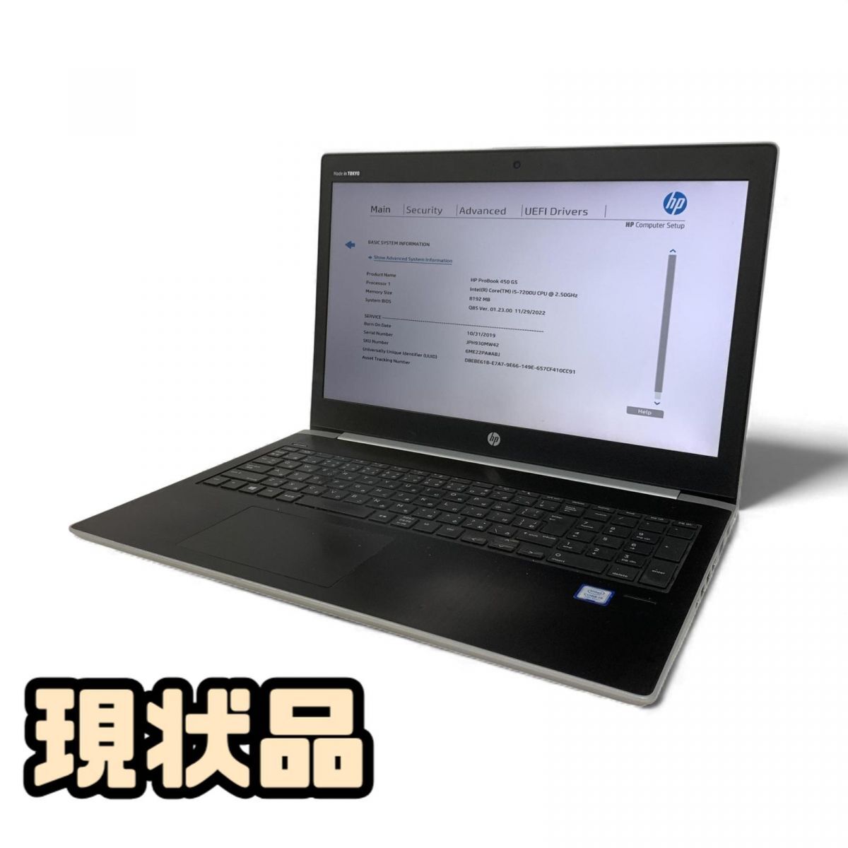 - ノートパソコン HP ProBook 450 G5 Core i5-7200U メモリ8GB SSD256GB OS再インストール済 現状品 AMK881776新