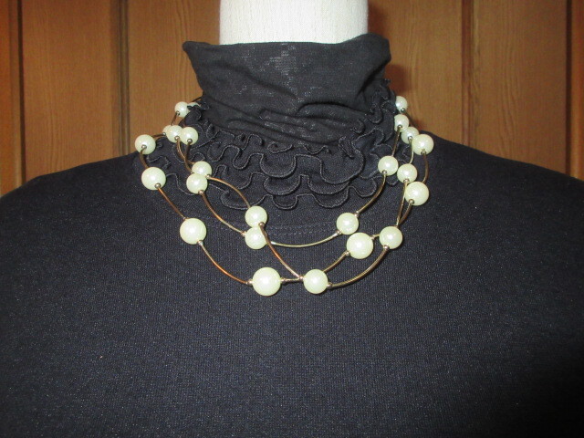 > ■【真珠風ネックレス3点おまとめ】■【画像1・2】ブランドロゴ入り3連■【画像3・4】長短3連■【画像5・6】長短2連■