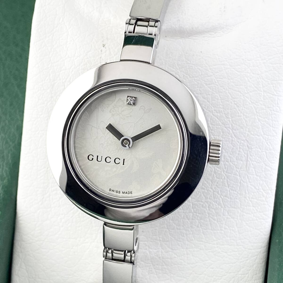 - 【1円〜】GUCCI グッチ 腕時計 レディース 1Pダイヤ フローラ 105 ホワイト文字盤 バングルウォッチ 可動品