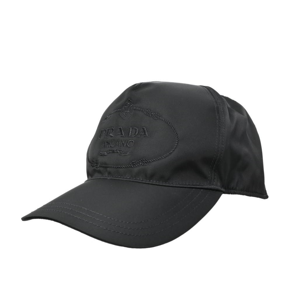 > 美品 PRADA ロゴ 刺繍 ナイロン ベースボール キャップ M ブラック プラダ KL4BAQSP93