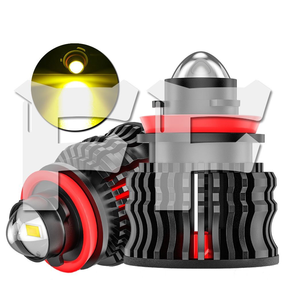 - 新発売!! 60W H8/H11/H16兼用 12000LM イエロー 3000K LED フォグランプ プロジェクターレンズ 12V キャンセラー 車検対応 無極性 2個