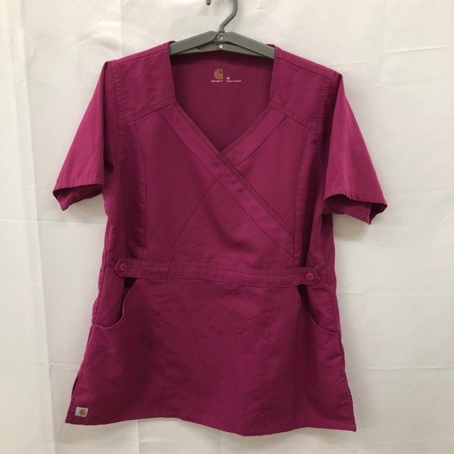 > D217 カーハート M アメリカ古着 スクラブトップ ポリエステル混 半袖ワークシャツ パープル Carhartt レディース