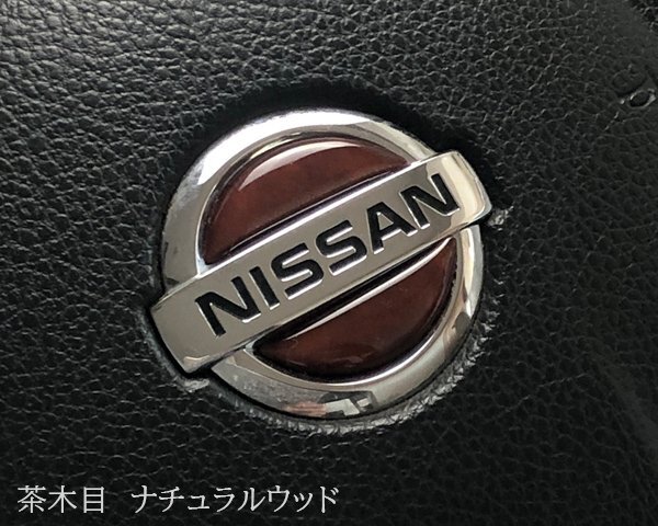 - 日産 ステアリング エンブレムシート ナチュラルウッド 茶木目 SDH-N01 樹脂盛立体3D ハンドル ZEROWIN NISSAN 簡単取付