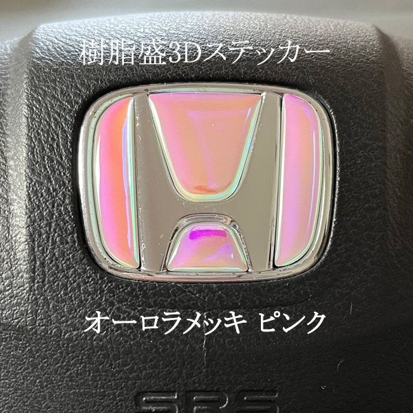 - ホンダ ステアリング エンブレムシート オーロラメッキピンク ハンドル用 SDH-H01 樹脂盛立体3D加工 ZEROWIN HONDA