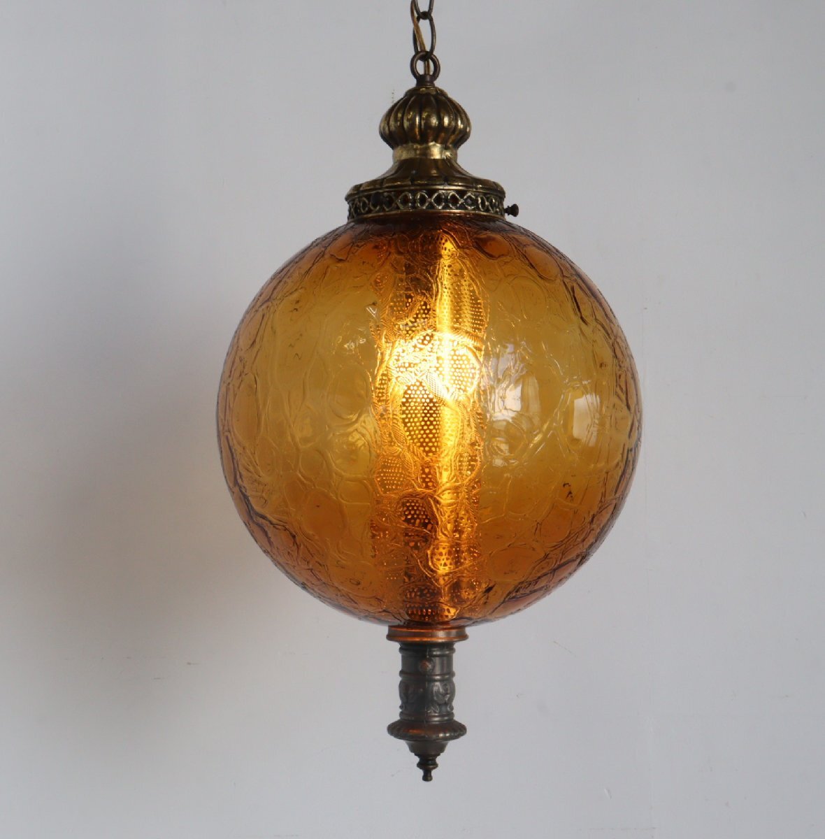 > 60s 70s ヴィンテージ アンバーガラス ペンダントランプ / アメリカ アンティーク 吊り下げランプ カフェ 照明#606-50-127-355