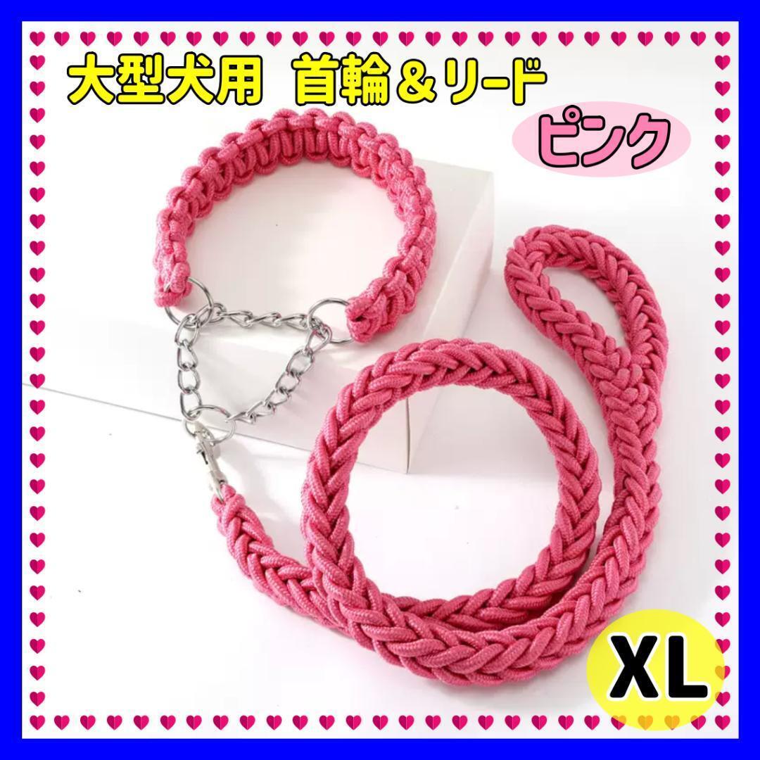 - 【ピンク】XL ペット 犬用 リード 首輪 極太 中型犬 大型犬 丈夫 散歩 トレーニング ロープ 丈夫 切れない 首輪 くびわ