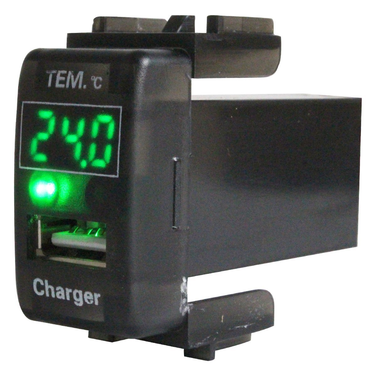 - 『ニッサンA』 セレナ C26 H22.11~現在 LED/グリーン 温度計+USBポート 充電 12V 2.1A 増設 パネル USBスイッチホールカバー 電源