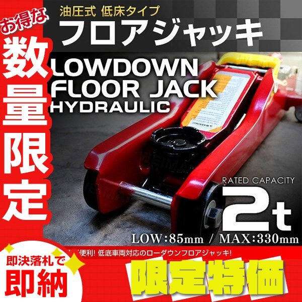 > ★冬季 限定価格★ 油圧式フロアジャッキ 2t ローダウン ガレージジャッキ 油圧 軽量 コンパクト ジャッキアップ タイヤ交換 メンテ