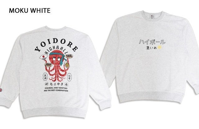 > ハイボールとたこ焼きクルーネックスウェット◆YOIDORE 杢ホワイト Lサイズ L(大ジョッキ) 845601 酔いどれ ヨイドレ トレーナー ゆったり