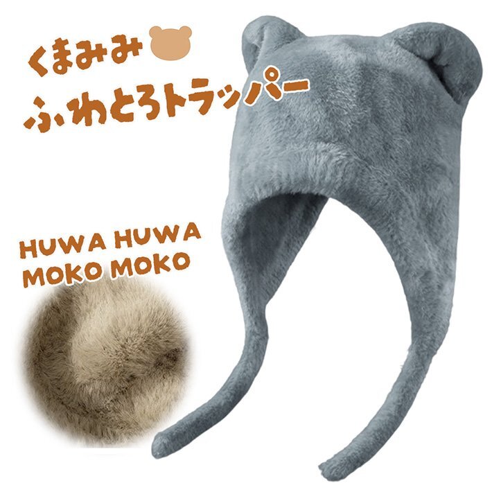 > 【ふあふあのクマ耳】トラッパー ハット トラッパー キャップ レディース 帽子 耳当て 防寒 冬支度 7986977 グレー 新品 1円 スタート