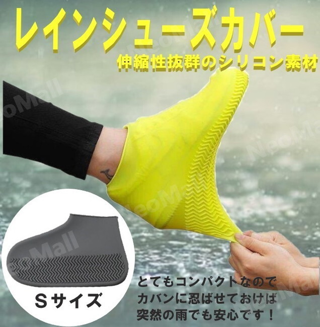 - 送料コミ ☆ 雨 から 靴を 守る! レディース メンズ シリコン レイン シューズカバー グレー Sサイズ 自転車 バイク 通勤 通学 登山