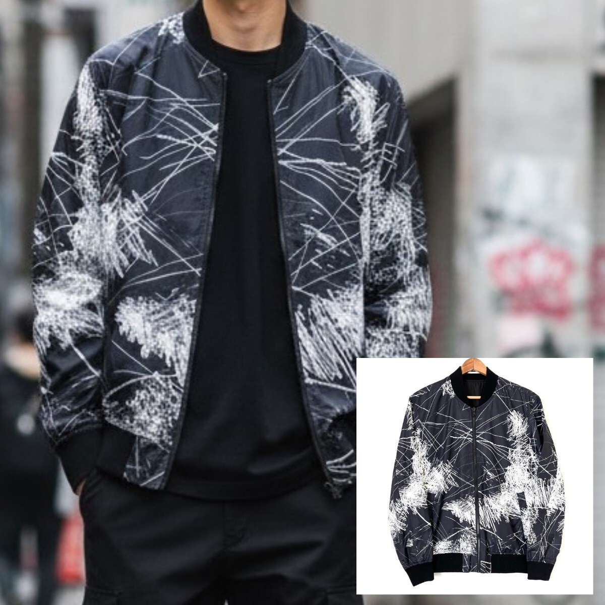 > 美品☆リバーシブル!【Suggestion】サジェッション ジップ ボンバー ジャケット ブルゾン フライト ストリート MA-1 総柄×黒 M/Y27474mm