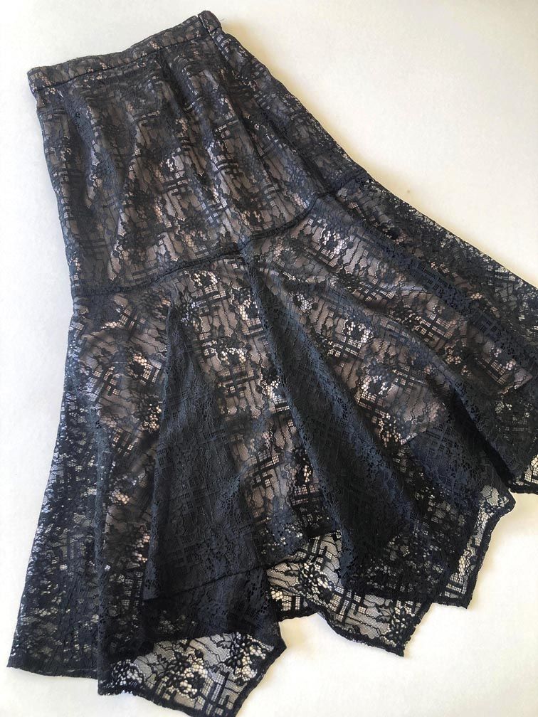- ゆうパケットOK 新品■mysty woman MW050406ND 定価8800円 ハンカチーフヘムレース スカート sizeF/黒■◆
