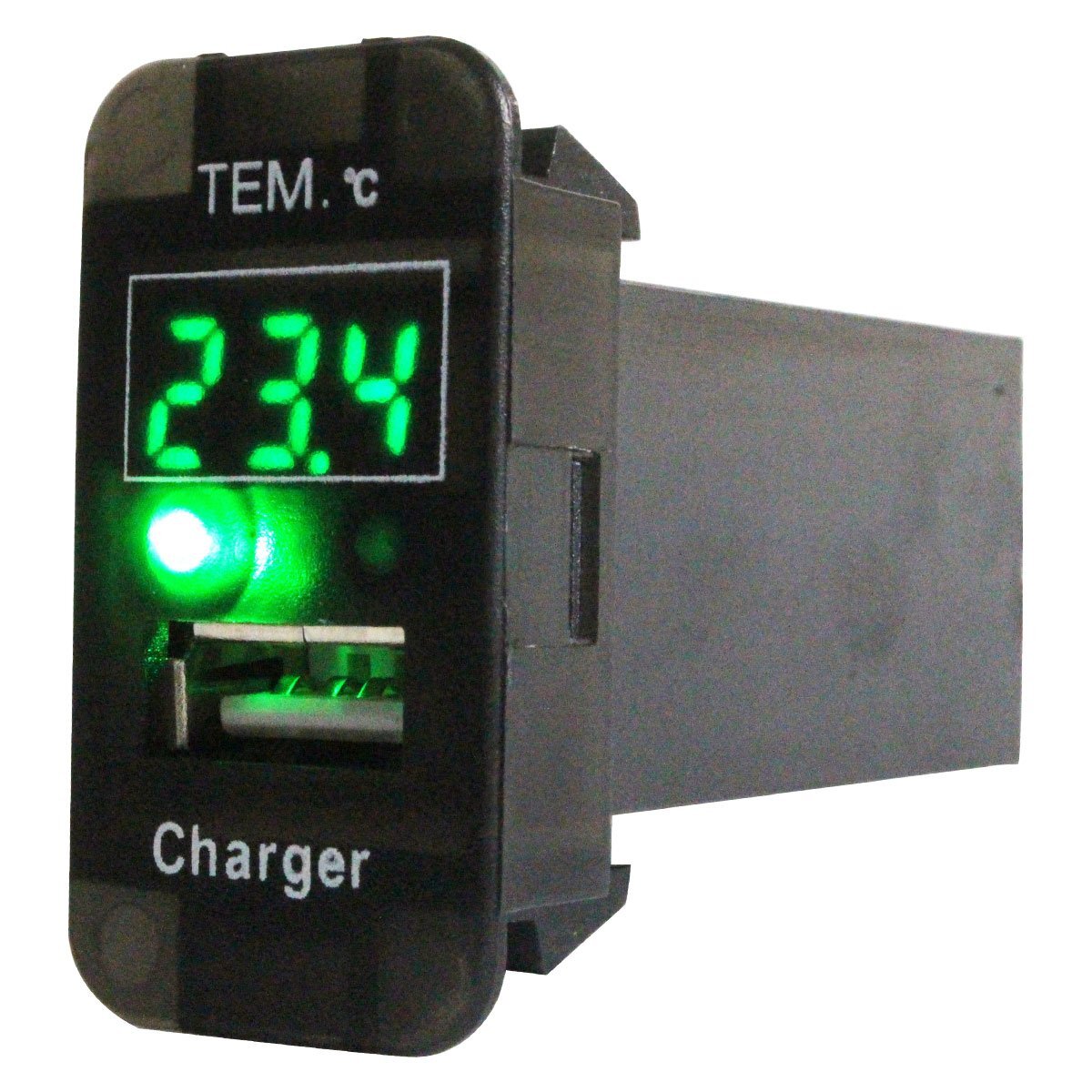 - 『スズキB』 AZワゴン MF33S H20.9~H24.12 LED/グリーン 温度計+USBポート 充電 12V 2.1A 増設 パネル USBスイッチホールカバー 電源