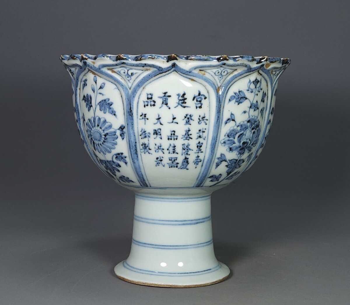 > 【積古】中国古美術 明時代 青花 高足 茶碗 古玩 骨董 美術品 骨董品 時代物 古美術 唐物 当時物 置物 口径18cm 高さ 16.5cm wx58