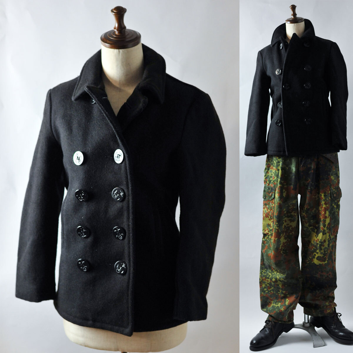 > ★ USA製 希少サイズ 名品! Schott ショット ウール素材 厚手メルトン(裏地キルティング)pコート サイズ14 ブラック(ピーコート)USED