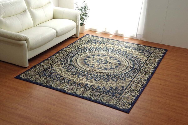 - ラグ 夏用 ネイビー約191×250cm ふっくら い草 サークル Fサークル