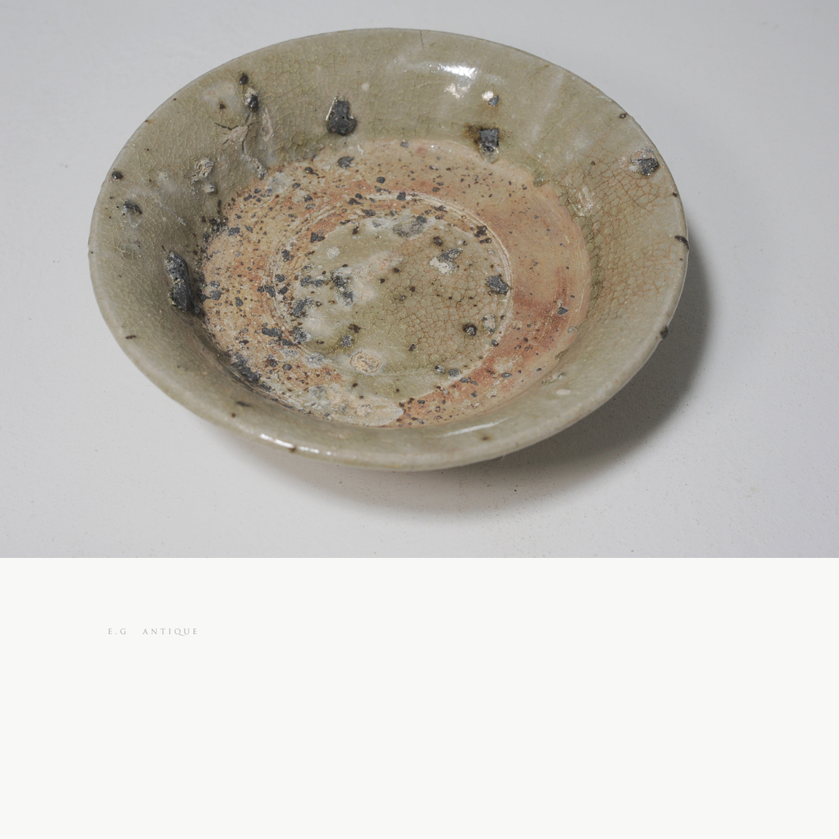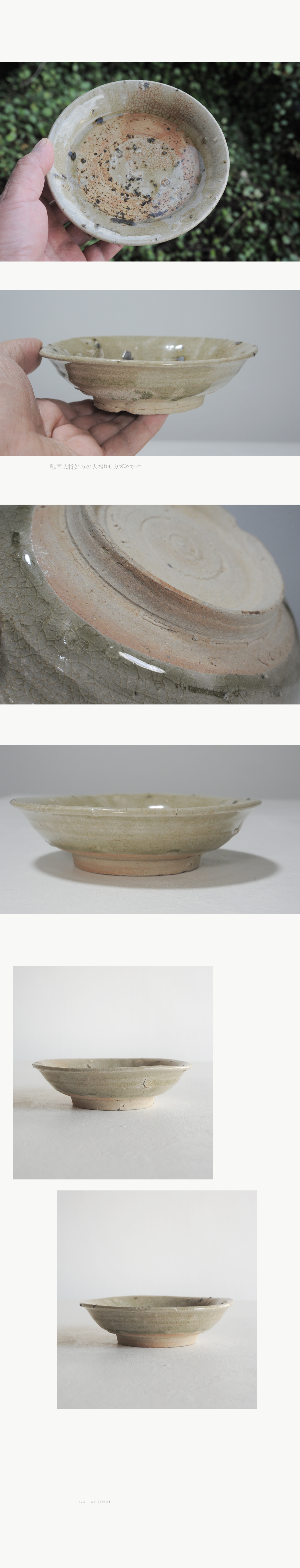 - 古瀬戸 灰釉 緋色オオサカズキ 中央沈線 15世紀 室町時代 酒器 盃 見立 仏教美術