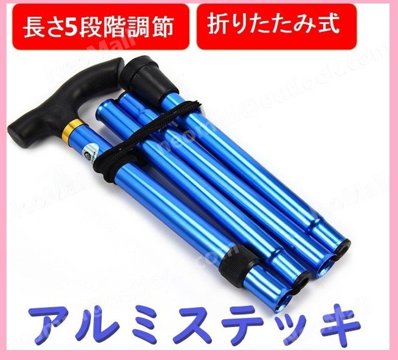 - 杖 アルミステッキ ブルー アルミ製 軽量 折りたたみ杖 歩行補助 ウォーキング 登山 介護 折り畳み 健康器具★全国一律送料無料★