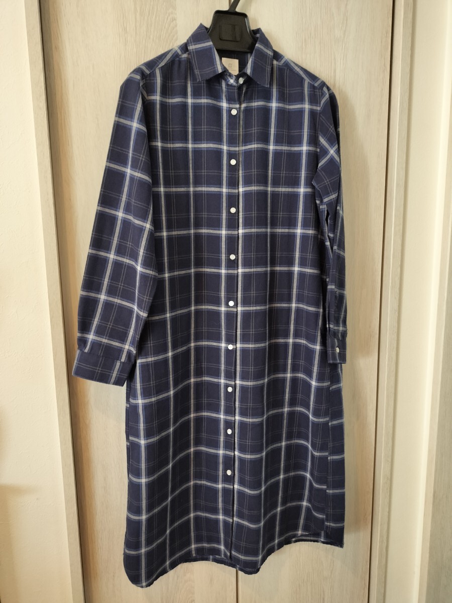 - 美品★栗原はるみさん 綿混チェックのワンピースシャツ 体型カバーナチュラル ゆとりの時間