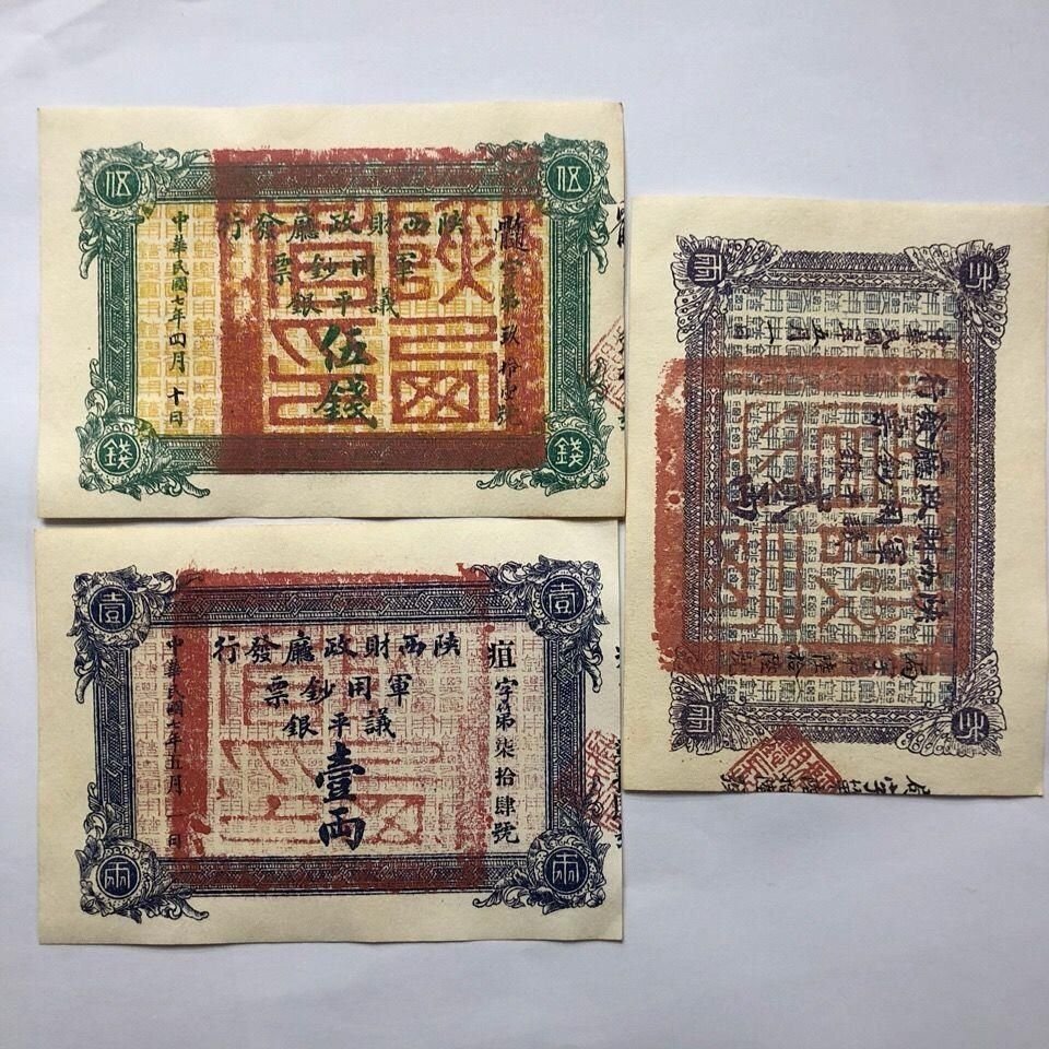 - 送料無料 中国紙幣 3枚セット 民国七年 陝西省財政庁軍票 美品 外国紙幣 簡易包装 郵便発送 ZH705