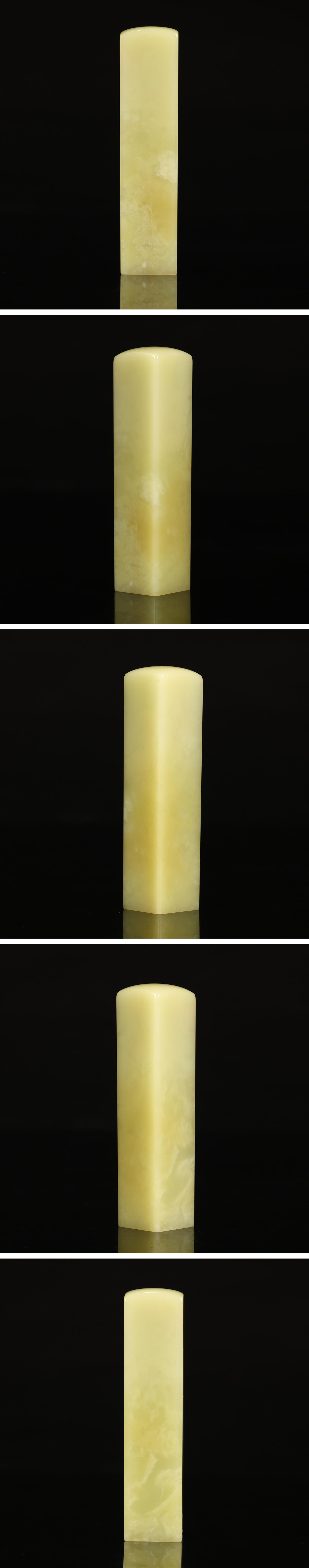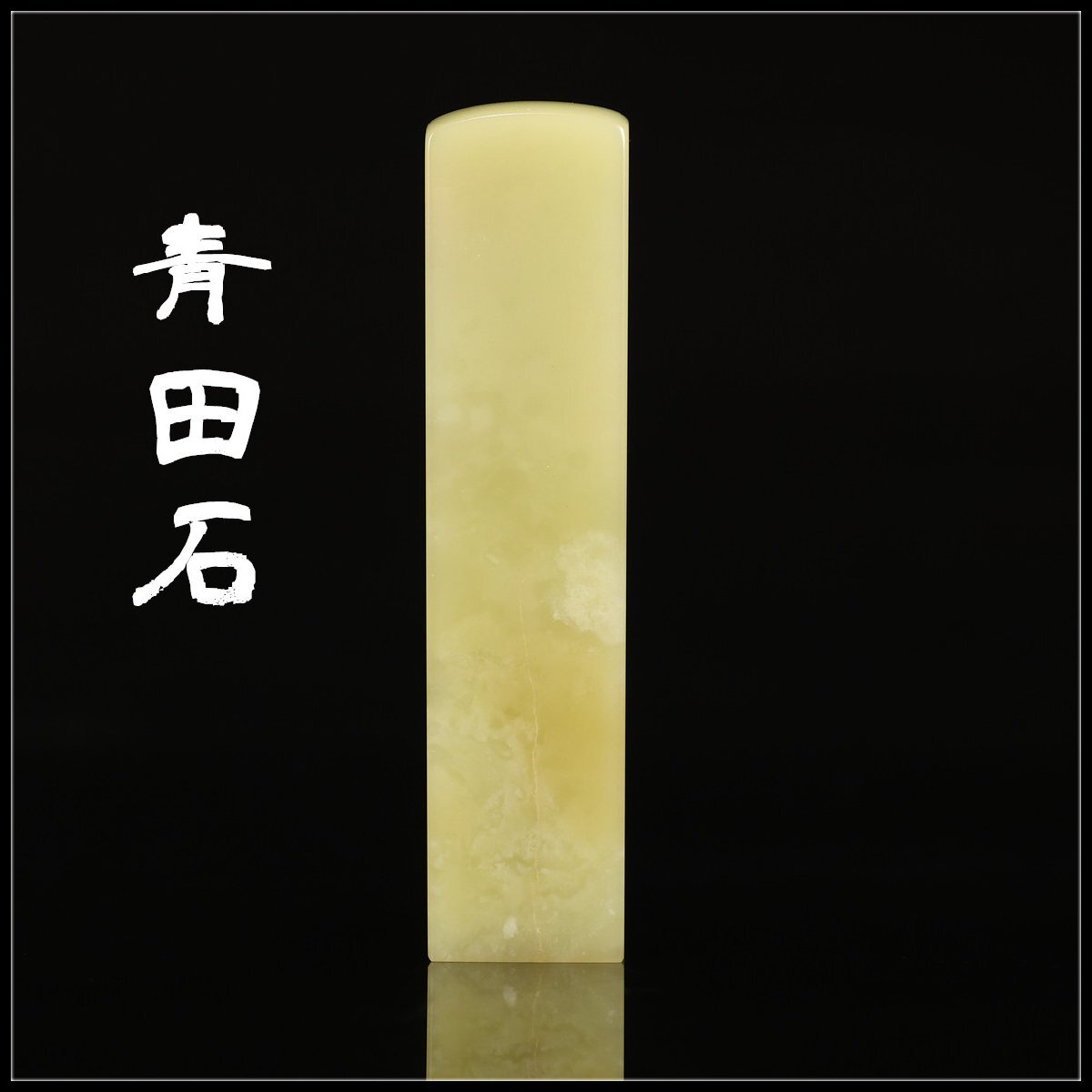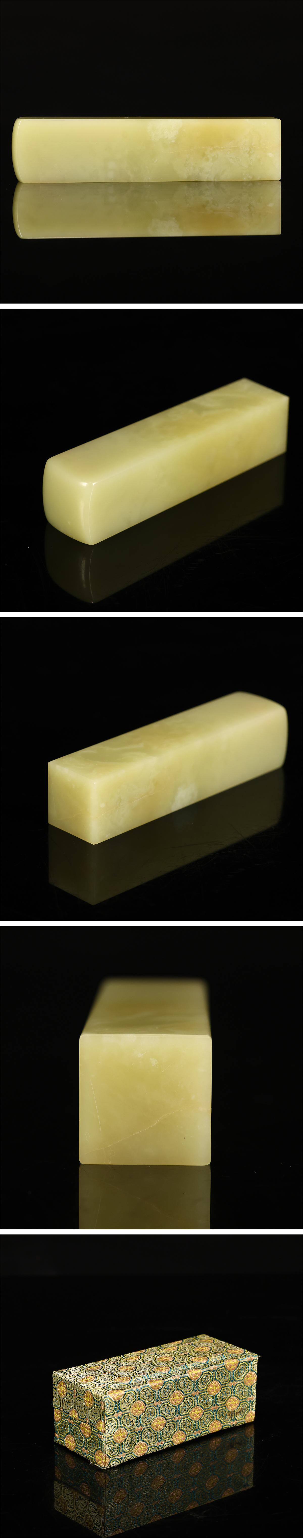 【吉】IB186 唐物 【青田石】 方印材 印章 黄7.7㎝ 幅1.8㎝/共箱付 美品!拍卖