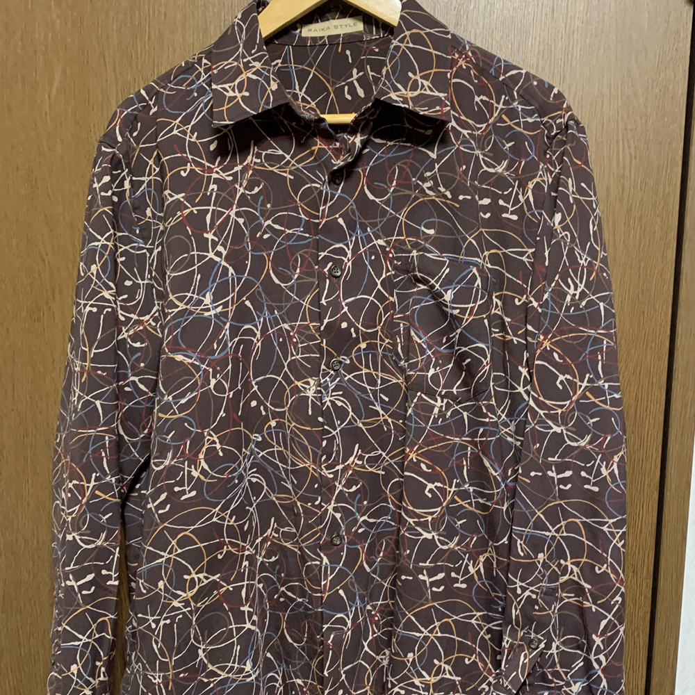 - 48【RAIKA STYLE|長袖シャツ】ライカスタイル ブラウン系 総柄