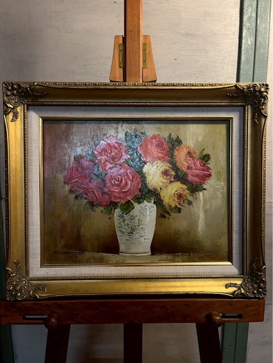 > 真作 中島達幸 『 バラ 薔薇 』 油彩 6号 静物画 花 花瓶 ピンク 植物 洋画家 油絵 絵画 バラ 静物画