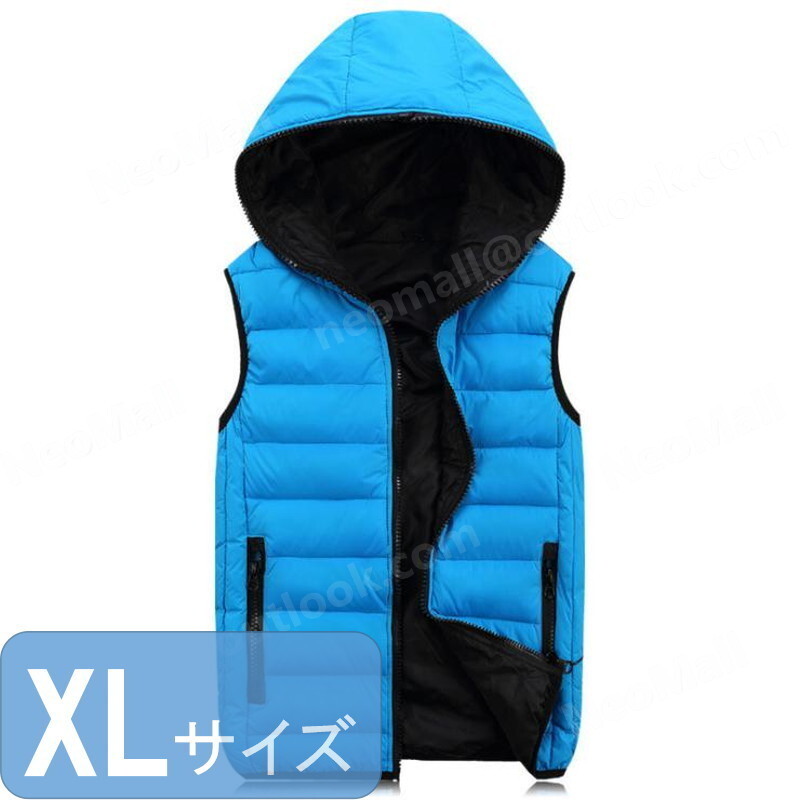 - シンプルな メンズ ダウンベスト 003 ブルー XLサイズ 中綿ダウン 中綿ベスト キルティング アウター 防寒 秋冬 暖かい