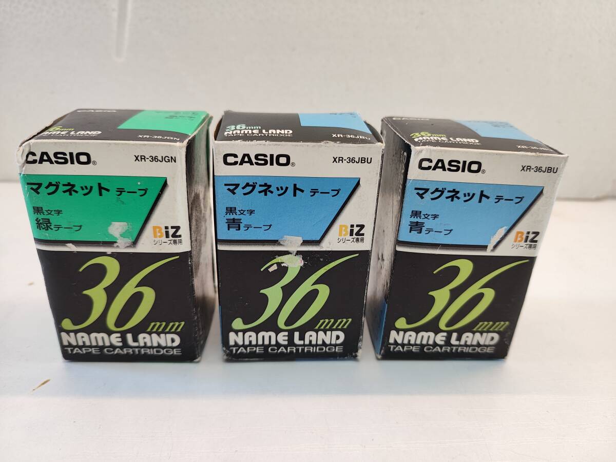 > ●未使用品 CASIO NAME LAND 36mm マグネットテープ 黒文字青テープと緑テープ XR-36JBU x2 XR-36JGN x1●