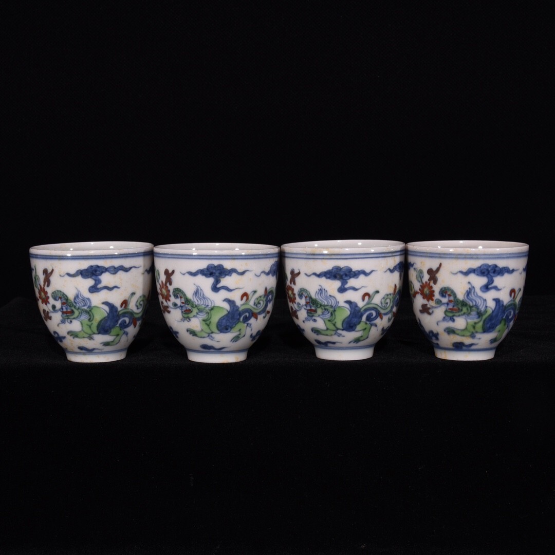 - 永し 明時代 大明成化年製 斗彩麒麟紋杯 一套 古陶磁器 陶芸 皿 中国陶瓷器 唐瓷 置物擺件 古美術品 古賞物 収集 旧家蔵出 中国唐物