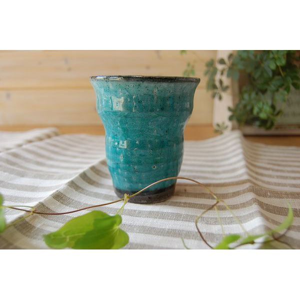 - 焼酎カップL/トルコブルー/松助窯/美濃焼/手作り/1個 sy026