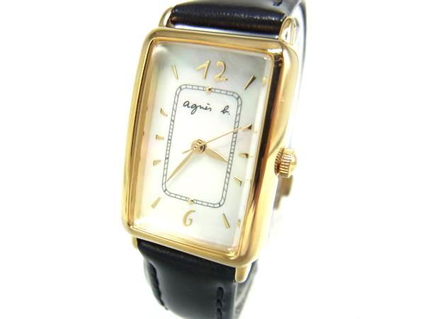 > ■稼働品■ agnes b. アニエスベー レザー×ステンレススチール 腕時計 ウォッチ レディース ブラック系×ゴールド系 DJ6804